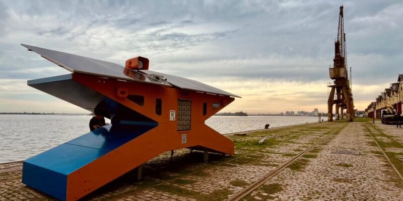 Além disso, o equipamento possui câmeras de monitoramento, sinalização em LED e uma estrutura reforçada para resistir à água, vandalismo e ventos fortes.